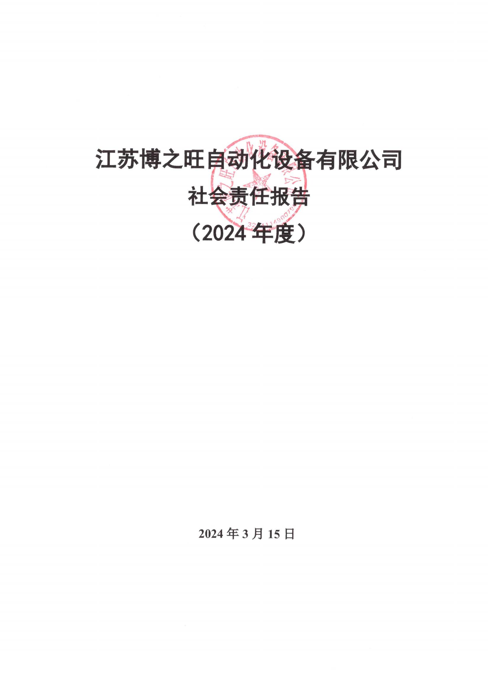 江蘇博之旺自動化設備有限公司2024年社會責任報告